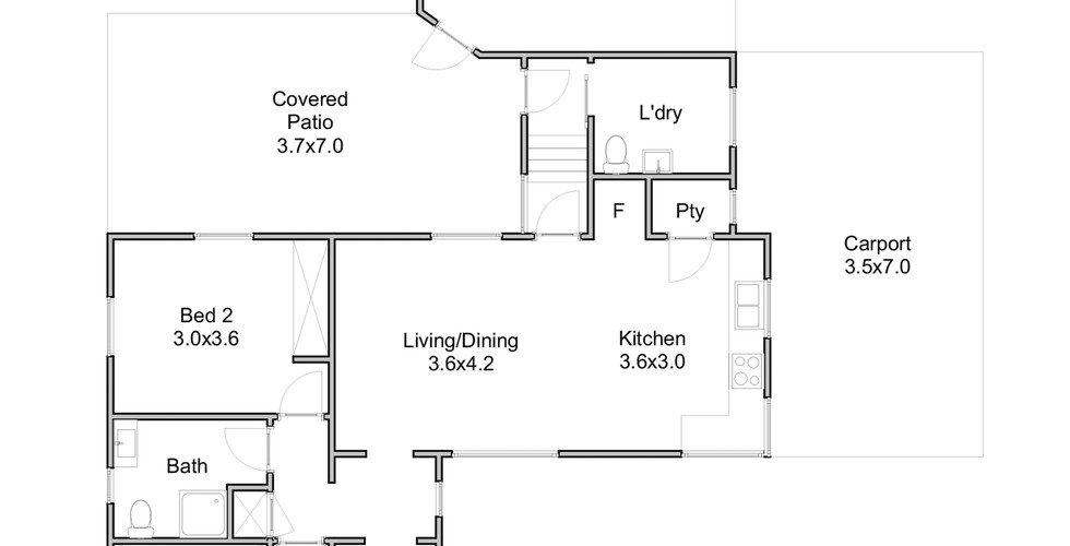 2 bed, 1 bath, 3 car on 411m2 block